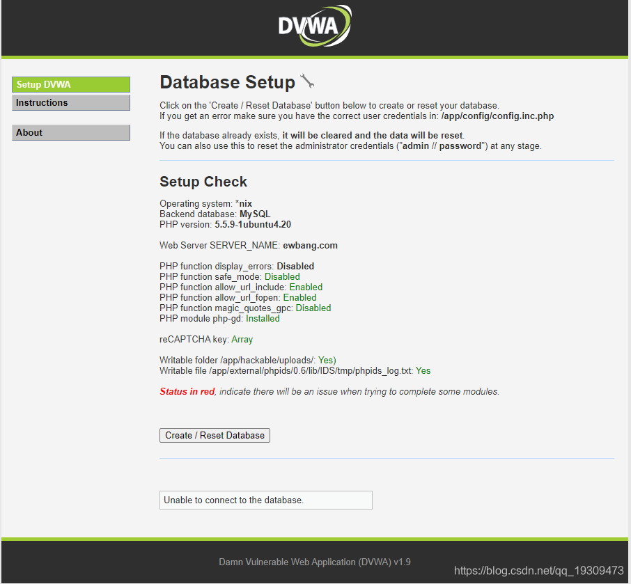docker run --name dvwa -d -p 80:80 infoslack/dvwa