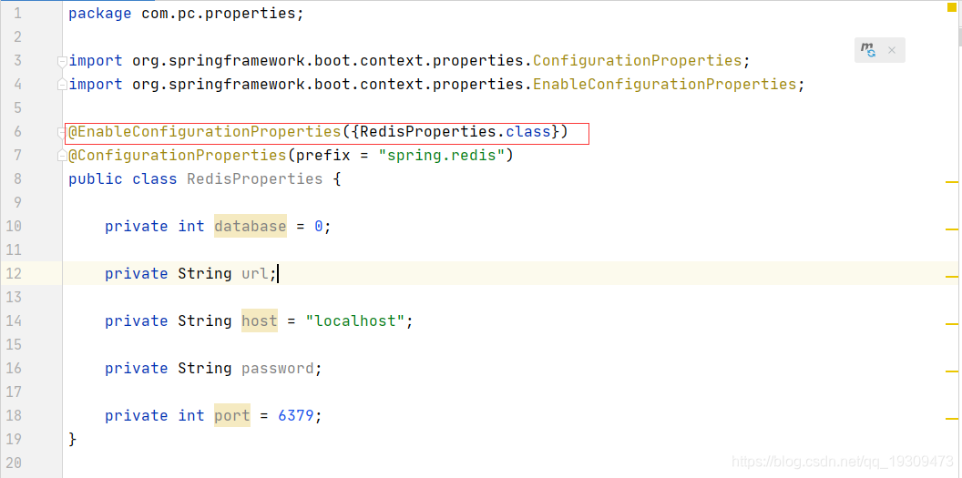 第二步:在注解的上方增加一个注解 @EnableConfigurationProperties({当前类.class})