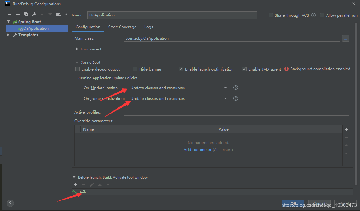 操作步骤:顶部菜单- >Edit Configurations->SpringBoot插件->目标项目->勾选热更新。