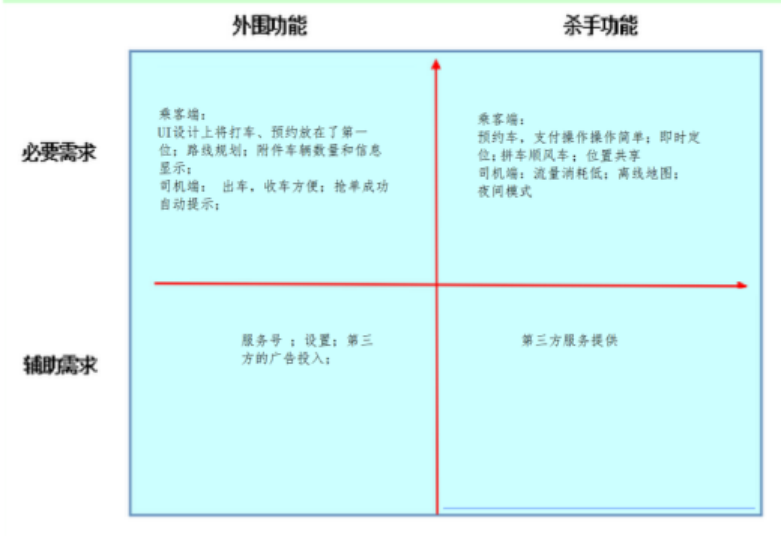 杀手功能:针对某一应用需求我们的竞争对手和用户已经决定了的必要满足的需求,我们的创新功能也在这一部分。
