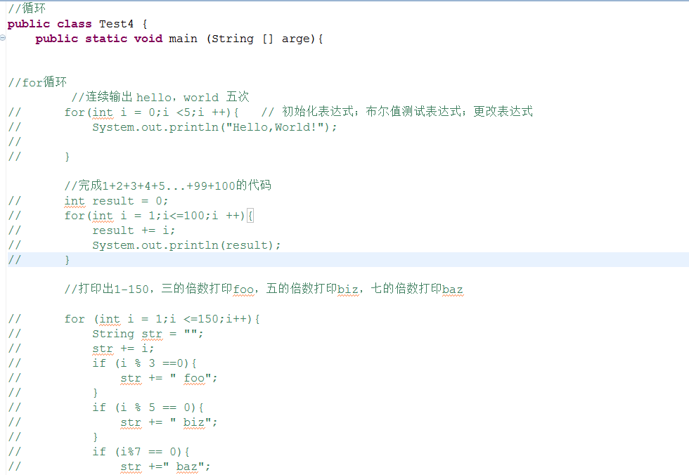 // for(int i = 0;i <5;i ++){ // 初始化表达式;布尔值测试表达式;更改表达式