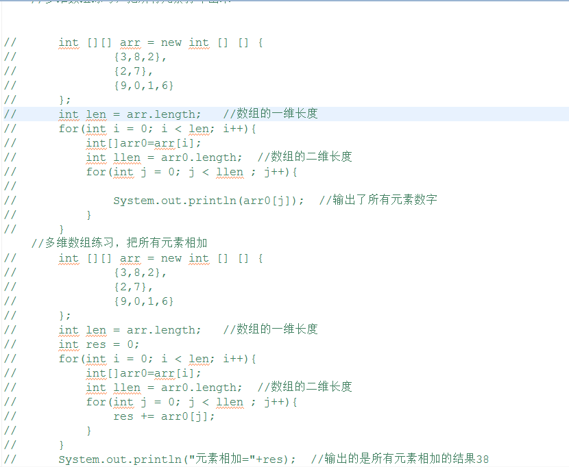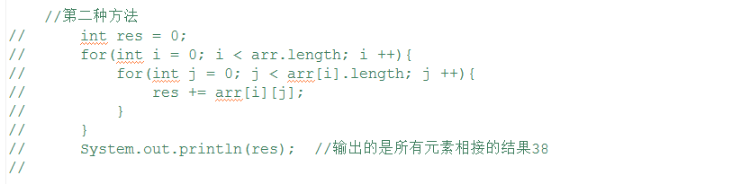 // System.out.println("元素相加="+res); //输出的是所有元素相加的结果38