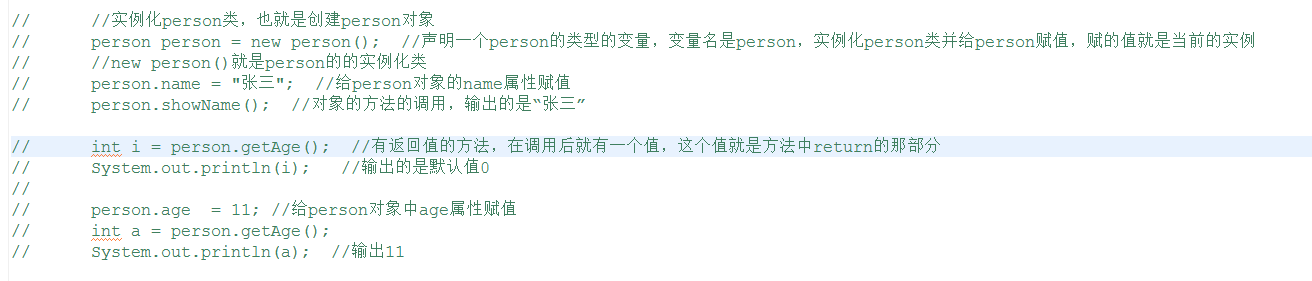 // int i = person.getAge(); //有返回值的方法,在调用后就有一个值,这个值就是方法中return的那部分
