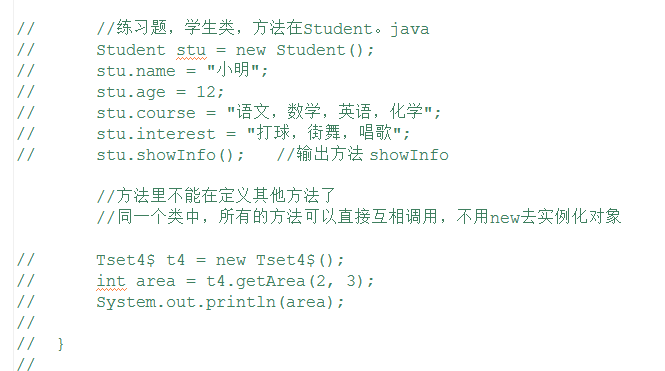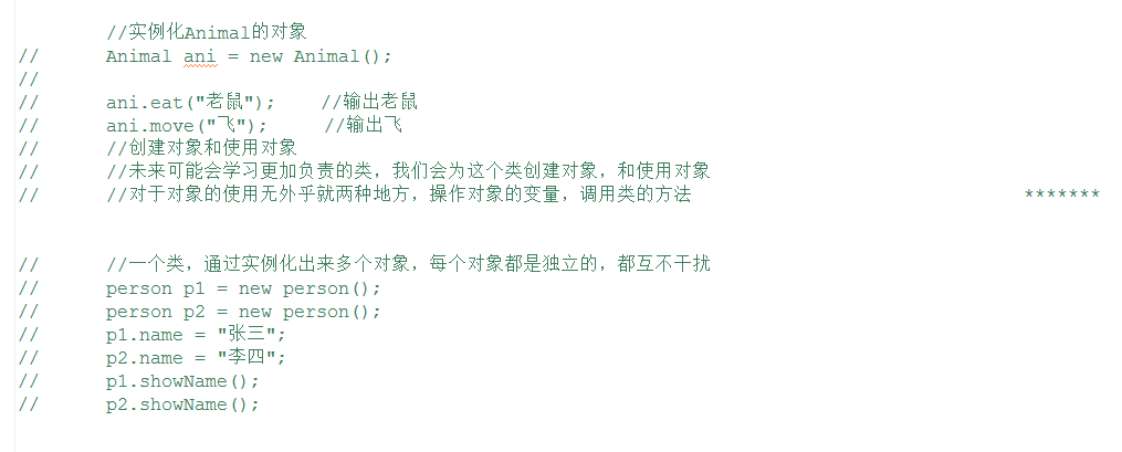 // //对于对象的使用无外乎就两种地方,操作对象的变量,调用类的方法 *******