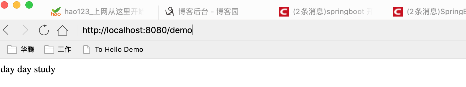 @RequestMapping("/demo") public String hello(){ return "day day study"; } }