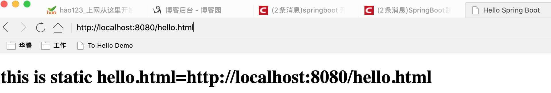下面我们在static目录下创建一个hello.html,通过直接访问http://localhost:8080/hello.html