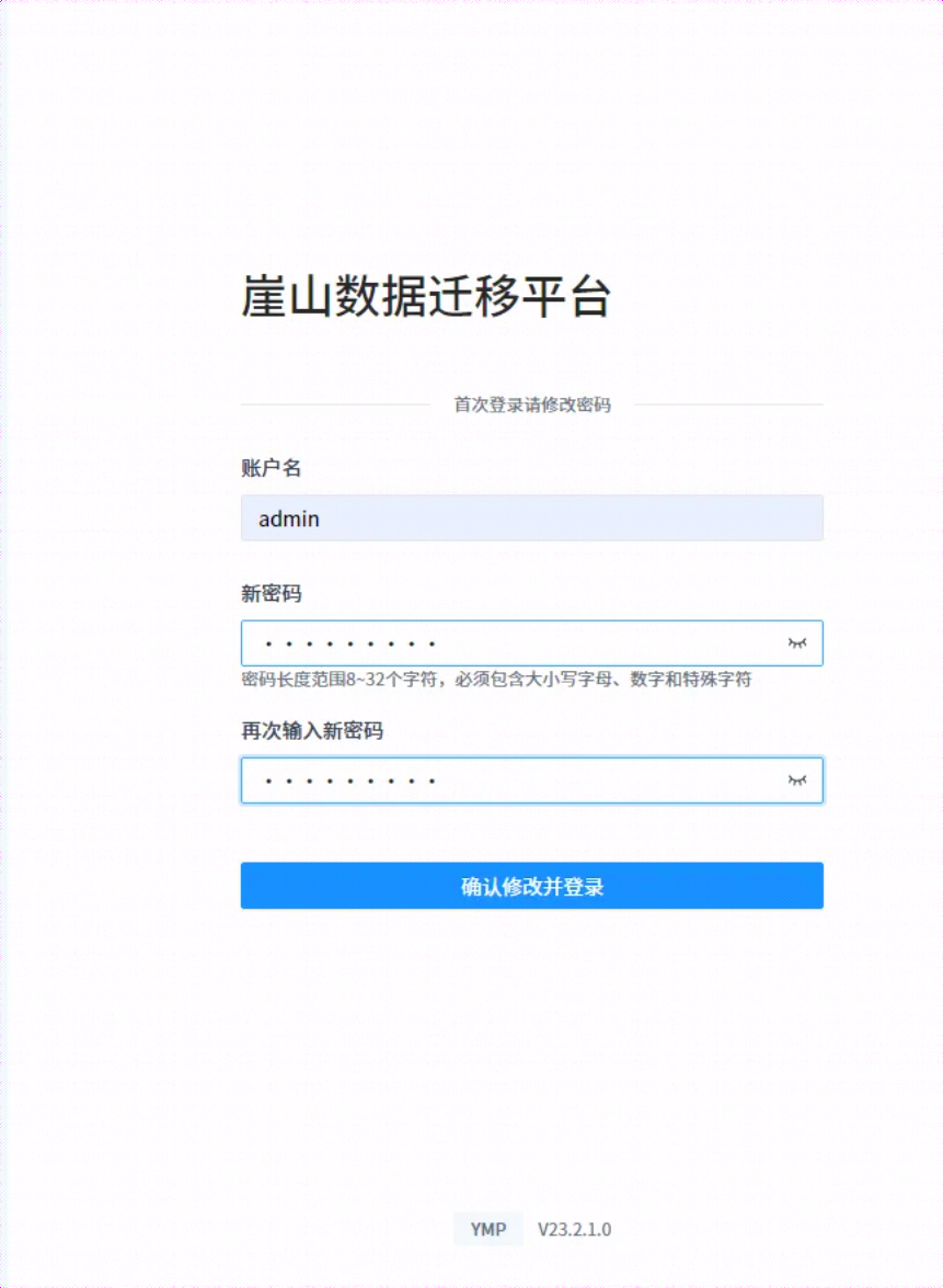 $ cd /home/ymp/yashan-migrate-platform/ $ sh bin/ymp.sh password --sys yasdb_123