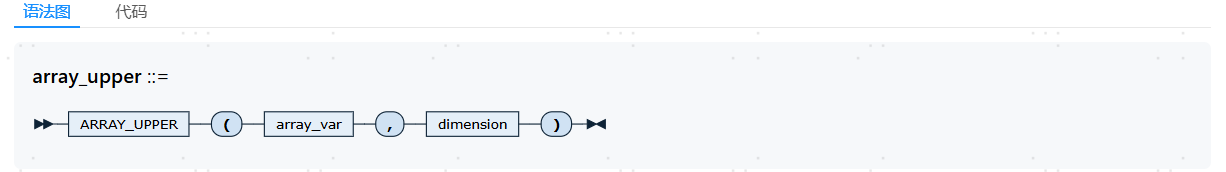 ARRAY_UPPER函数对数组(数组变量,数组对象,数组类型)array_var计算按dimension指定维度的成员数量上限,返回一个INT类型的数值。