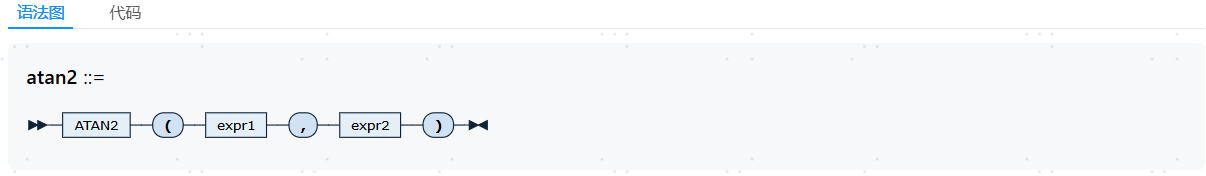 ATAN2函数返回给定参数 expr1/expr2 的结果的反正切值,参数以弧度表示,大小本身无限制(只受限于其所属数据类型所规定范围),函数将返回一个大小在区间[-pi,pi]的DOUBLE类型数据。
