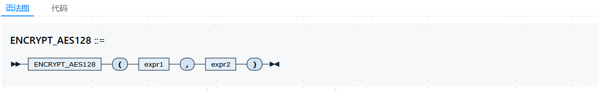 ENCRYPT_AES128函数以expr2为key加密expr1的明文,返回一个VARCHAR类型的密文。