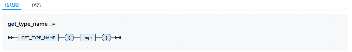 GET_TYPE_NAME函数将expr作为数据类型ID,用于查询类型的名称,并将结果作为VARCHAR类型的字符串返回。