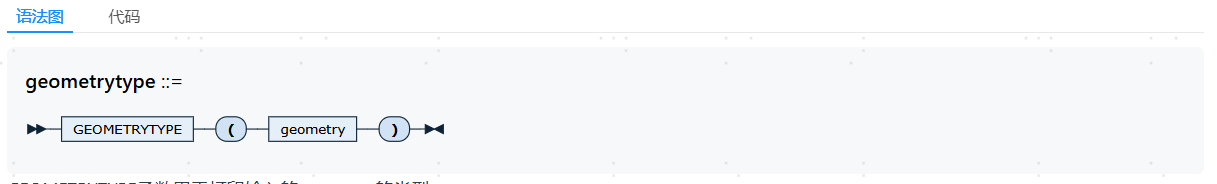 GEOMETRYTYPE函数用于打印输入的geometry的类型。