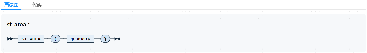 - geometry是POLYGON、MULTIPOLYGON或GEOMETRY COLLECTION类型会返回对应的面积,其它的geometry类型会返回0。