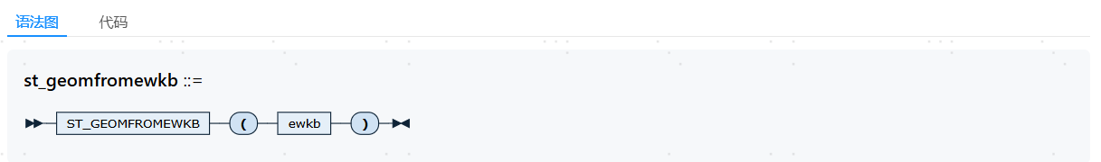 ST_GEOMFROMEWKB函数根据给定的ewkb(Extended Well-Known Binary)返回一个ST_GEOMETRY类型的数据。