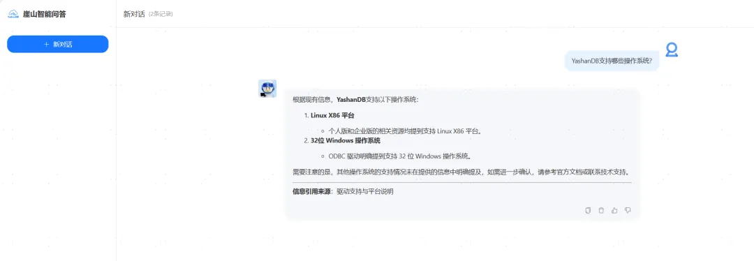 其中,崖山智能问答系统的知识库由崖山相关资料和其向量化后的数据构建而成,向量化数据存储于向量数据库中,专用于高效执行问题内容的搜索与匹配。文档资料涵盖以下内容: