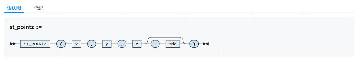 ST_POINTZ函数根据输入的x、y、z和可选的srid,返回对应坐标和srid的POINT数据。