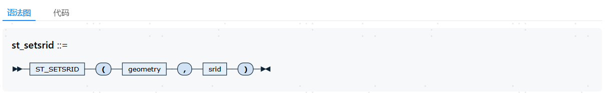 ST_SETSRID函数用于将输入的geometry的空间参考系标识号(SRID)设置为指定的srid。