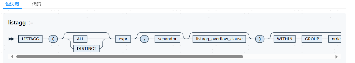 LISTAGG函数将多行的expr执行拼接操作,并通过分隔符分隔,返回一行VARCHAR/RAW类型的字符串。