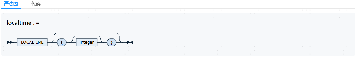 LOCALTIMELOCALTIME()LOCALTIME(integer),integer必须为一个0~9之间的整数字面量,表示保留的微秒位数,舍去的位按四舍五入。