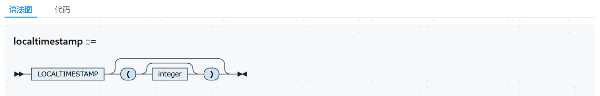 LOCALTIMESTAMPLOCALTIMESTAMP()LOCALTIMESTAMP(integer),integer必须为一个0~9之间的整数字面量,表示保留的微秒位数,舍去的位按四舍五入。