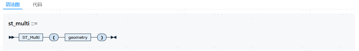 ST_MULTI函数用于返回输入的Geometry对象所对应的Geometry Collection类型。若输入的Geometry已是集合类型,则返回输入的Geometry对象。