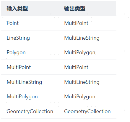 输入Geometry类型与返回Geometry类型的对应关系见下表: