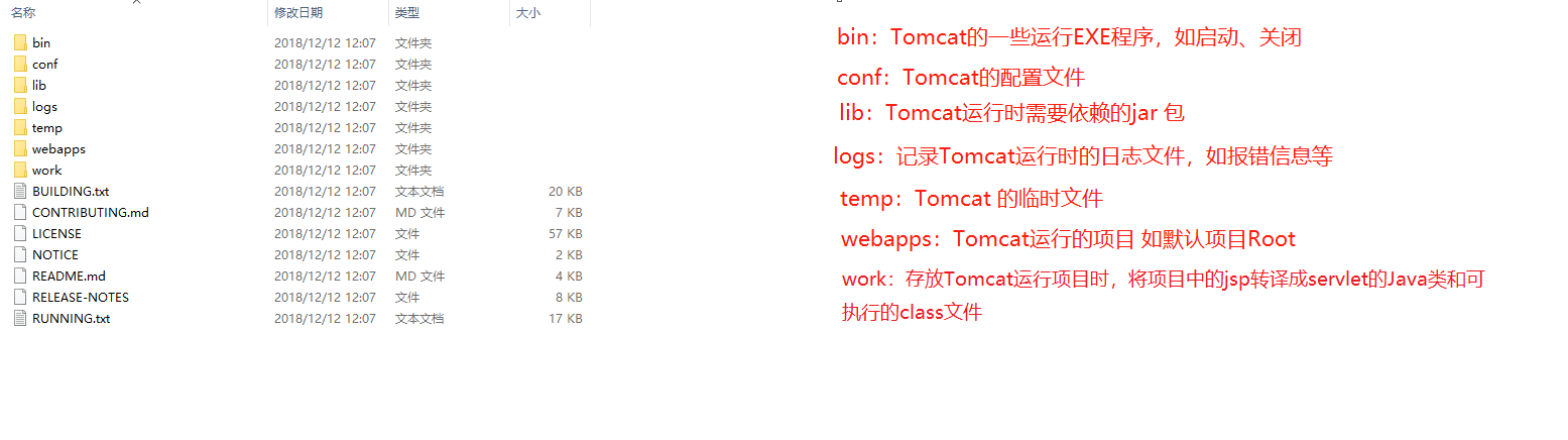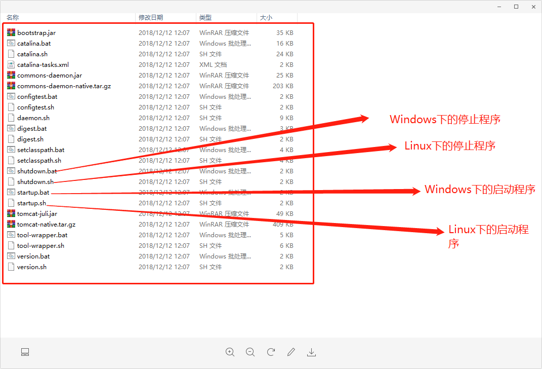解压下载好的免安装版的Tomcat 压缩包,看看里面都有什么,如下图: