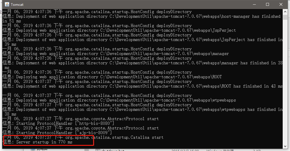 配置好了之后,启动一下Tomcat看看,如出现如下图所示,就表示启动并初始化成功: