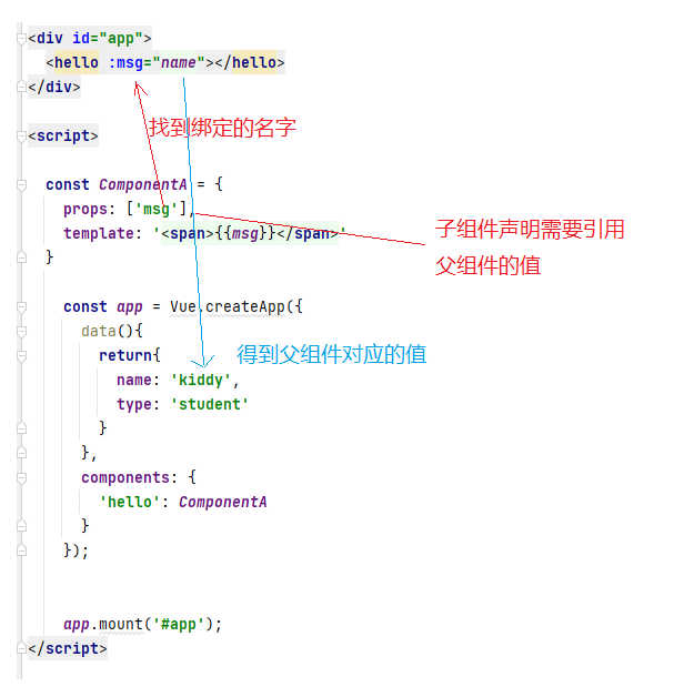 - 第一个参数为组件名,如'kiddy',也就是映射到自定义标签的名字。