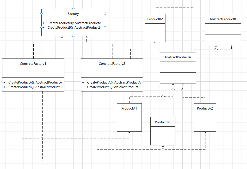 - AbstractFactory(抽象工厂): 它声明了一组用于创建一族产品的方法,每一个方法对应一种产品。