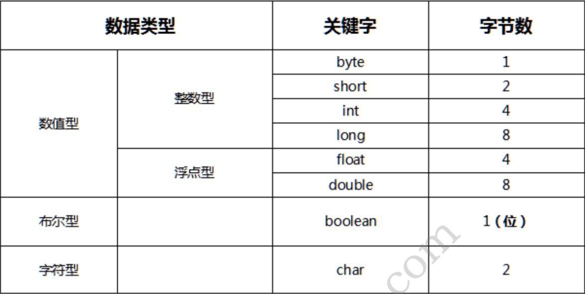 5.八种基本数据类型及其字节数