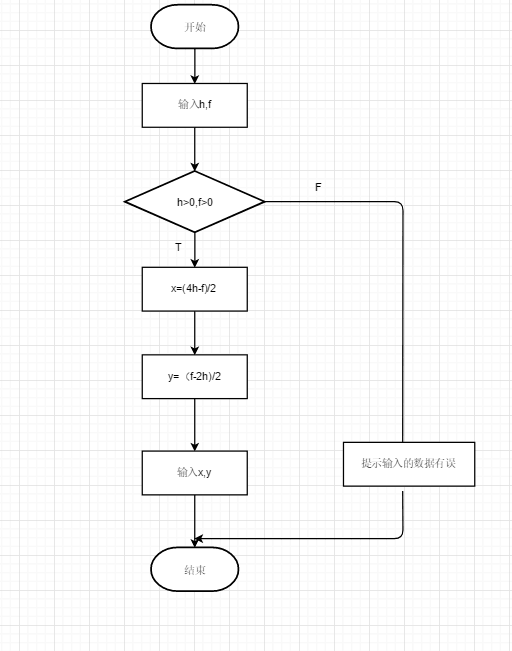 (1)问题简单描述:将鸡和兔子关在同一笼子里,假如知道鸡和兔的总头数h,鸡和兔的总脚数f,请设计算法,计算出鸡和兔分别有多少只。