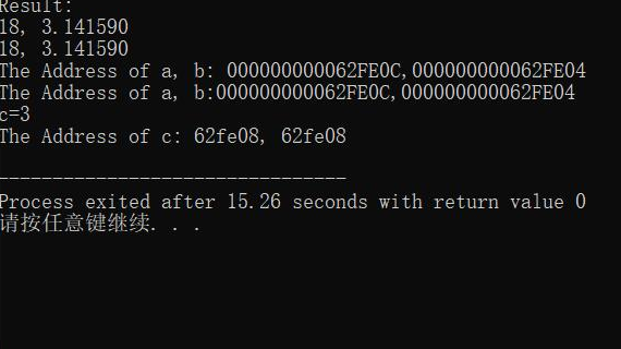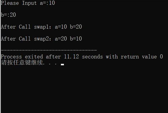 (3) 从主函数中分别调用上述两个交换函数,并打印输出变换后a,b的结果。