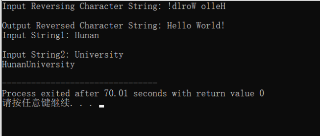 (4)从主函数中分别调用上述函数,输入字符串并打印输出结果。