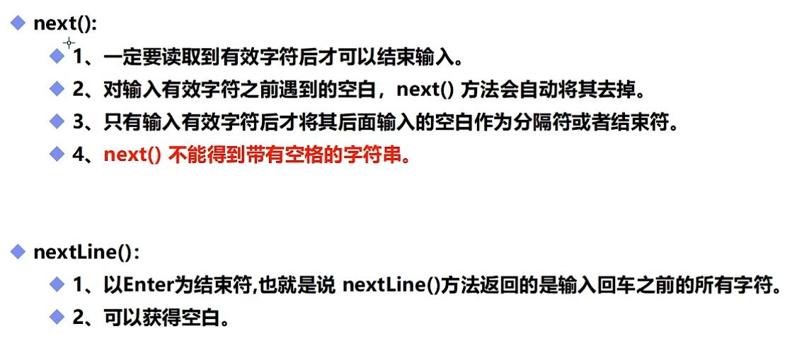 nextLine()是以Enter为结束字符的,会输出Enter前的所有字符 Scanner进阶使用用于判断数据类型