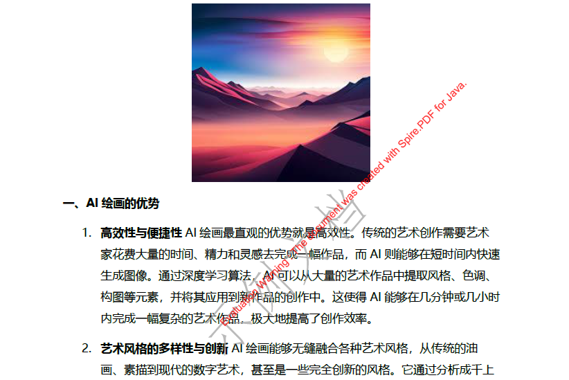 温馨提示:如果只是处理简单任务或者测试 Spire.PDF,你可以尝试 Spire.PDF for Java 的免费版。它生成的文件没有水印,对于处理轻量化文件或项目很合适。
