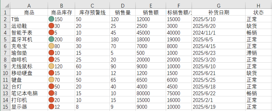 workbook.saveToFile("/output/库存预警-交通灯1.xlsx", ExcelVersion.Version2013);