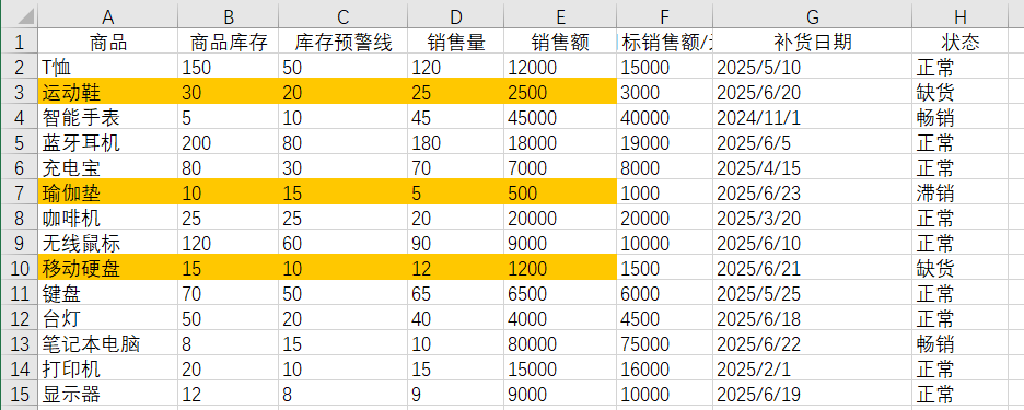 完整代码示例 - 高亮库存 < 50 且销售额 < 5000 的商品