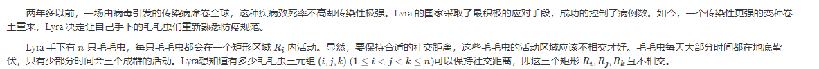 求平面内两两不相交的 矩形三元组个数 $ n <= 2e5$