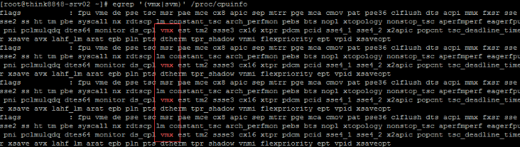 egrep '(vmx|svm)' /proc/cpuinfo