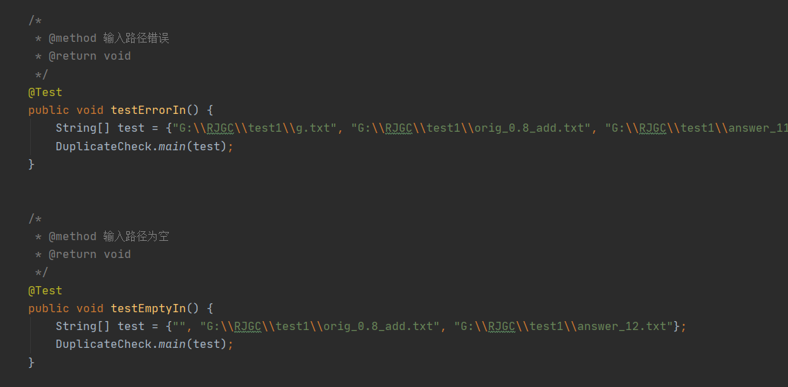 - testErrorIn 与 testEmptyIn 均是测试 FileNotFoundException 异常情况。