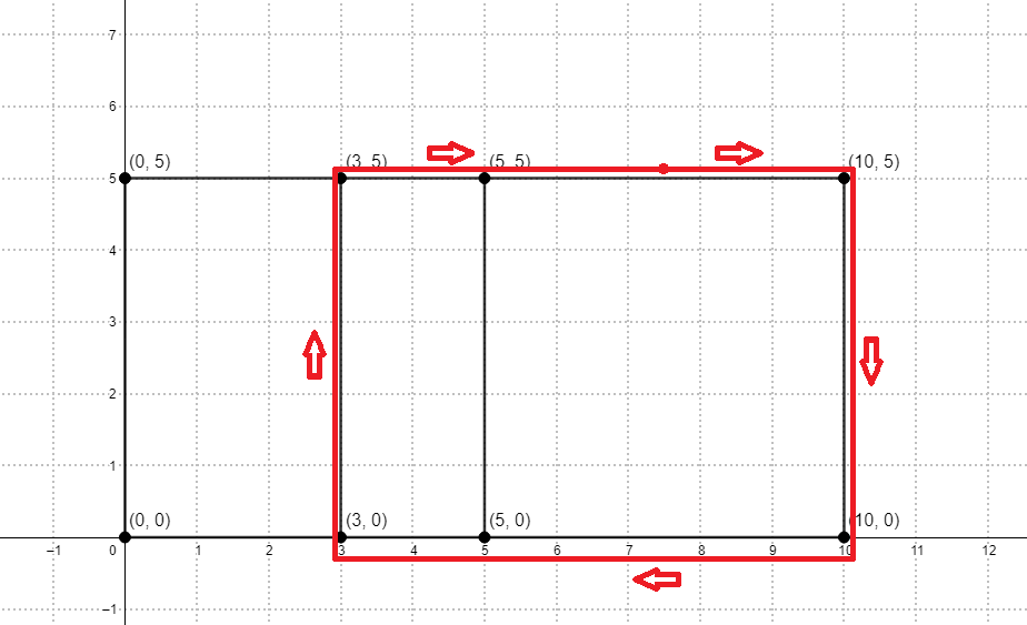 - two horizontal segments: one connecting the points $ (0, 0) $ and $ (x, 0) $ , the other connecting the points $ (0, y) $ and $ (x, y) $ ;