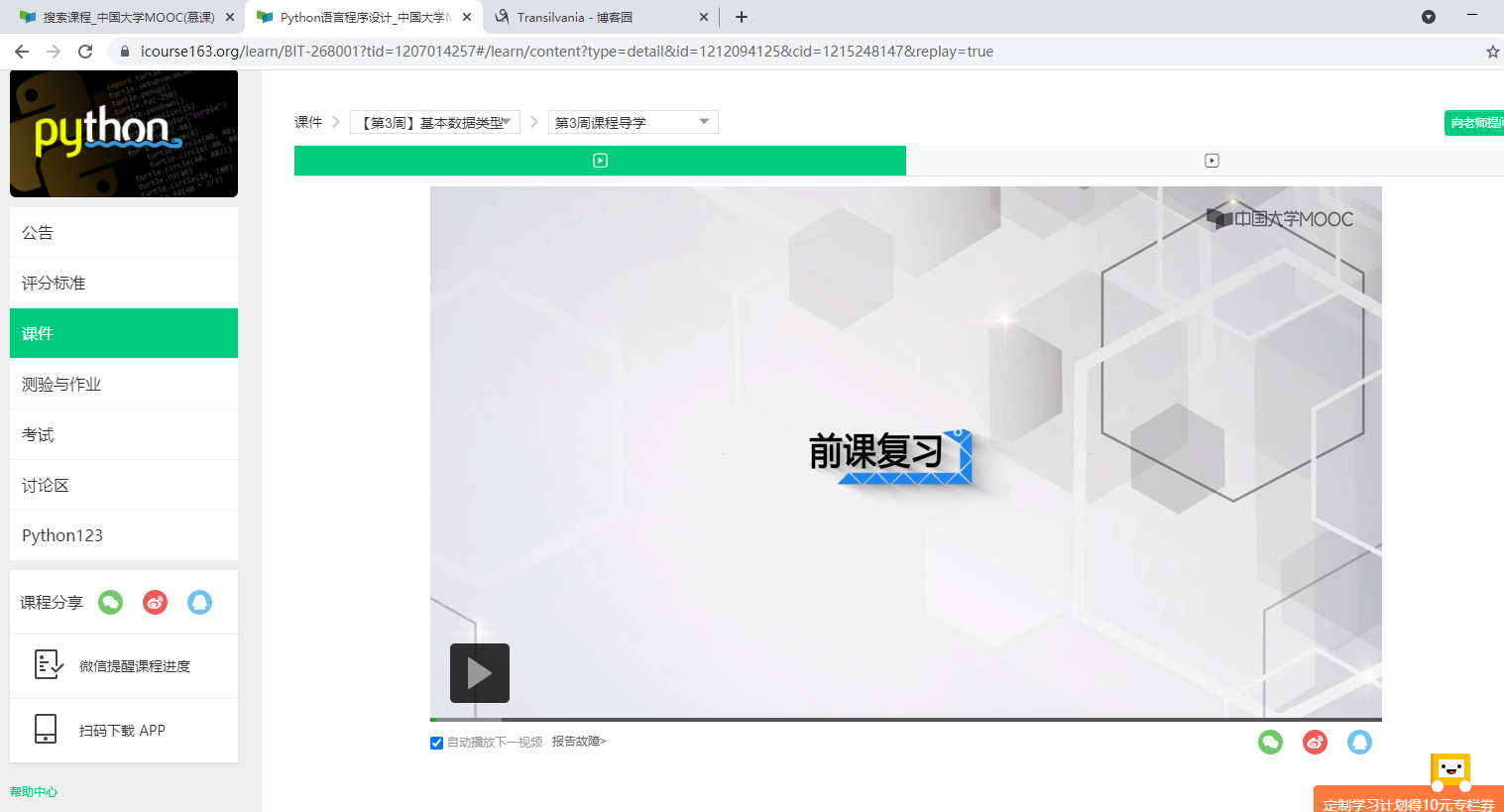 已完成第二周课程学习