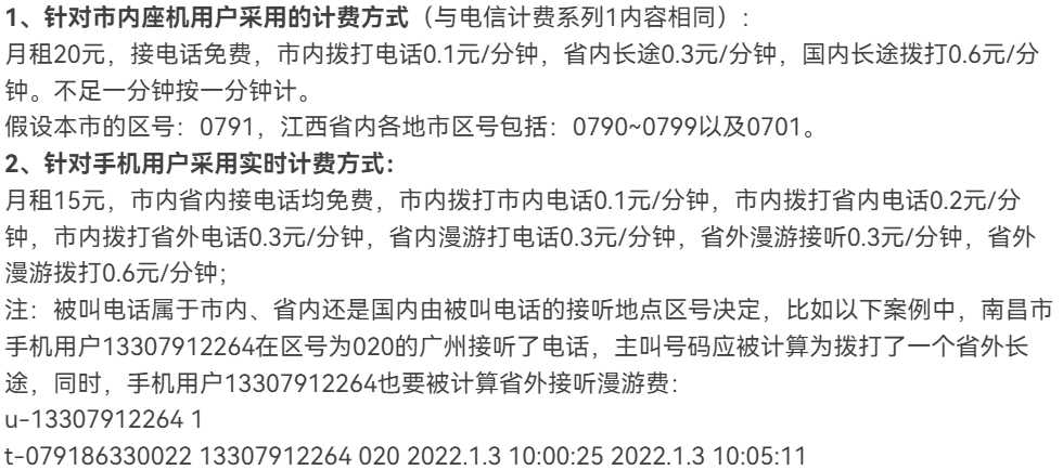 假设南昌市电信分公司针对市内座机用户采用的计费方式:
