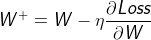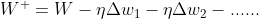 最终得出的结果,就是将这些求导过程相乘,此时得出的Δw是一个有符号的数字,Δ的正负符号告诉了我们沿着梯度更新的方向,此时将Δ乘以一个学习率η,得到的η·Δw,就是要更新的权重数值: