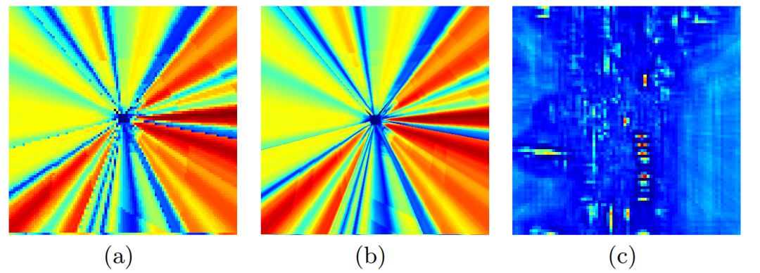本文提出的3D-CVF,使用跨视点空间特征融合策略结合相机和激光雷达特征。和前面的研究工作不同的是,本文并对Image信息做二维的特征提取后,并不是采用索引的方式将特征信息转为点的特征信息,而是将图像信息通过作者设计的auto-calibrated projection模块投影到点云场景的BEV视图上,可以大体理解为降视锥的前视图转化到点云的BEV上,如下图所示,(a)图表示不采用auto-calibrated projection模块投影到BEV上的可视化效果,(b)表示的是通过作者设计的auto-calibrated projection模块后的平滑对其特征。但是(b)并不能定位物体的局部特征。(c)表示的是应用了adaptive gated fusion network后,可以看出在feature -map上可以定位特征信息。