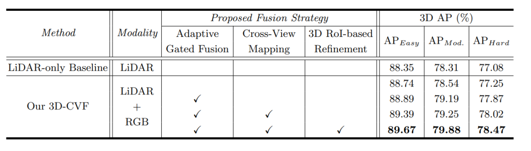 消融实验如下,看的出来,在kitti的val数据集上,再不做refine时,精度提升没那么大,说明做refine对moderate和hard类别的重要性。