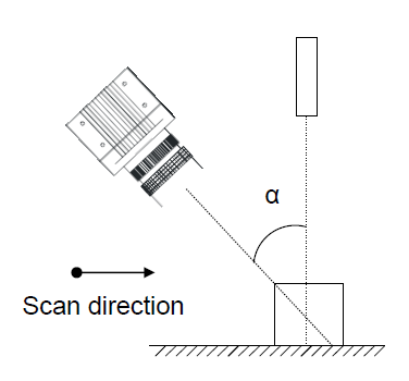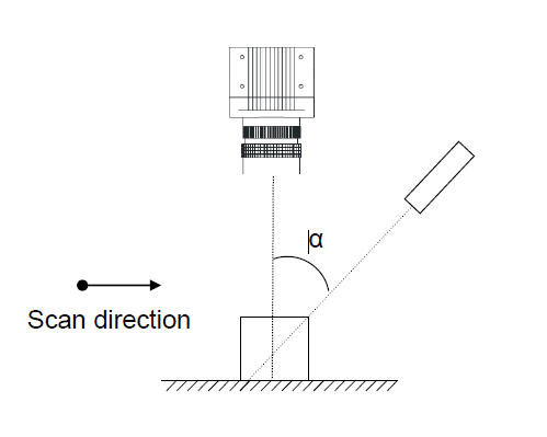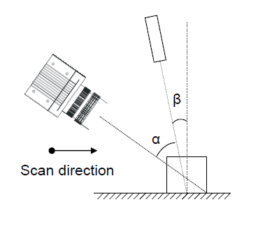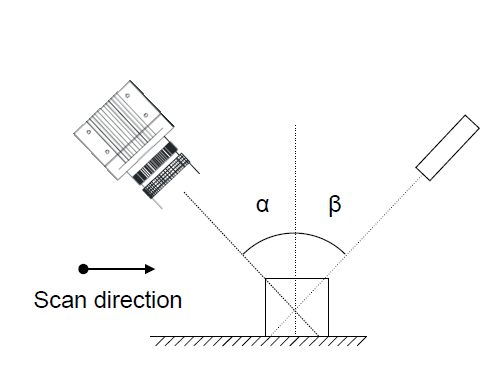 1)标准安装:激光垂直材料平面,相机与激光呈α角度