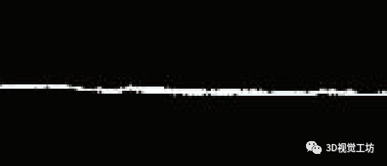 由于高空间相干性,线激光器会产生随机的斑点或颗粒状的图案,光条纹截面会出现宽度不一致的问题如图6所示。张小艳[21]等提出一种自适应二值化处理的方法先确定位光条纹各行截面边界,根据不同的条纹边界宽度利用灰度重心法提取光条纹中心点,提高了中心线提取准确性。