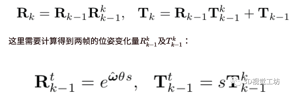 线性插值:这部分在张籍博士的LAOM中介绍的比较详细,大家在看的时候可以参考。主要思想是在当前帧最后一个激光点得到的雷达位姿[R_k,T_k]和次新帧的[R_k-1,T_k-1]中间的时刻t,利用恒速模型计算中间时刻点的位姿。具体来说: